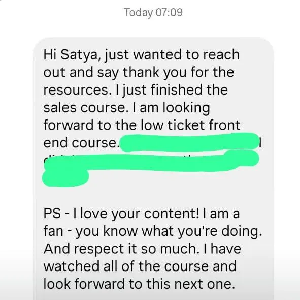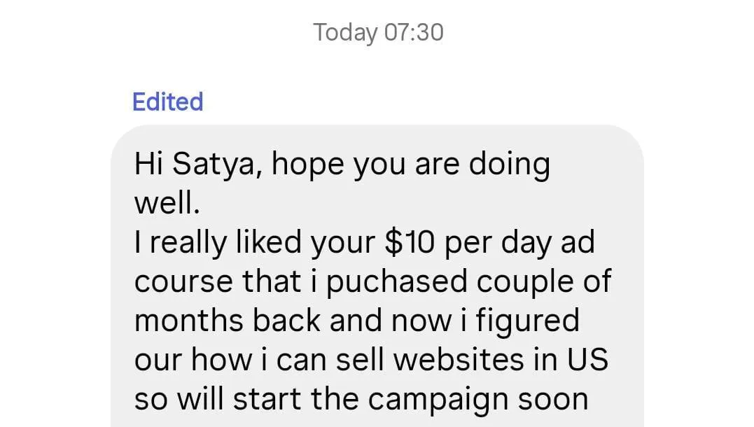 “I've used Satya's ad strategy for the last 1.5 months and closed 3 clients worth $4500 - with just $400 in ad spend.