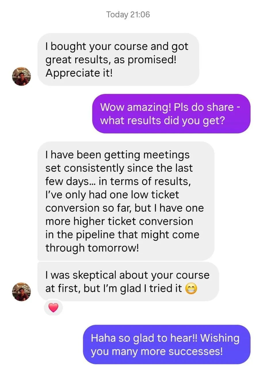 My students range from software developers to OBMs to funnel builders to branding consultants. Some charge $1.5K, others $5K+ — and they’ve all used this same system to generate leads in days, not months.