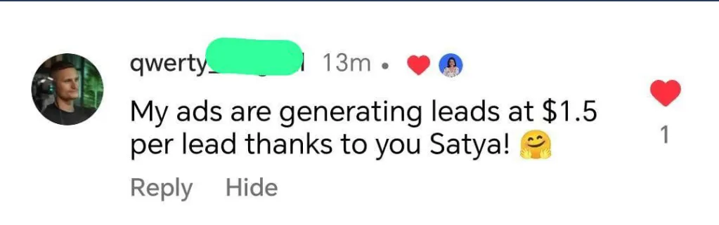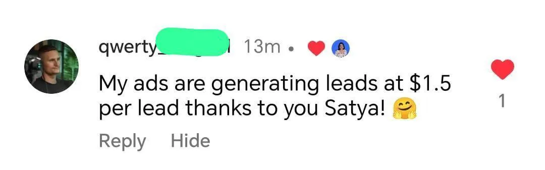 Follow what Satya says step by step - you'll get a great cost per lead and also a great return on the investment from the system and the ad spend.”
