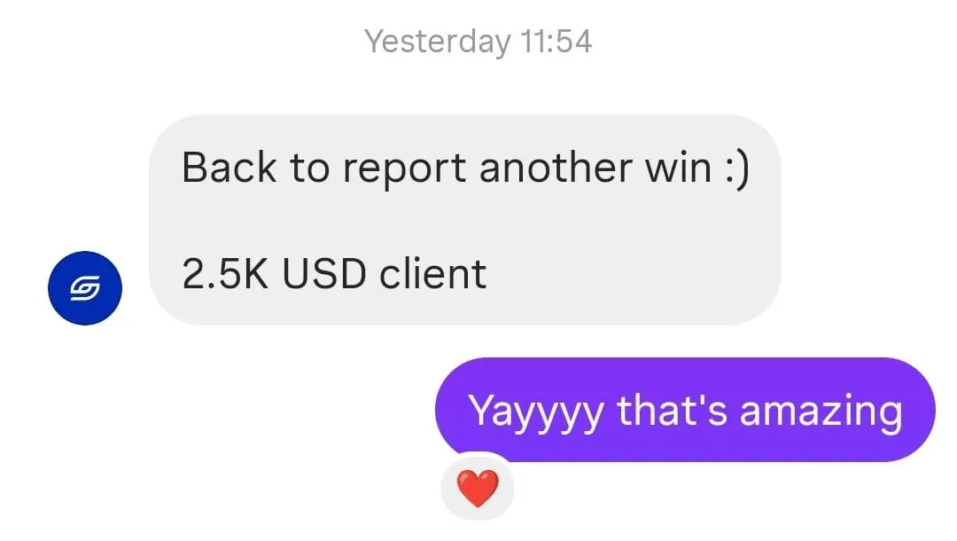 But I kept following up with my leads, stayed consistent, and within 4 weeks - I closed 2 clients worth $2,250 in revenue.