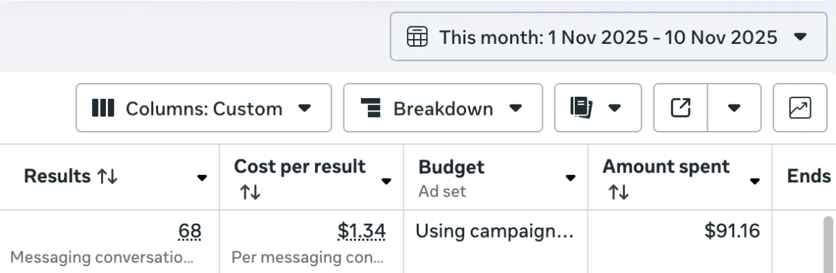 I spent just $130 in my first month, got 24 leads, booked 2 calls, and closed 2 clients worth $4,800.