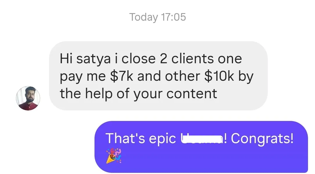 I just converted my first 2 clients within a month of running ads using Satya's $10/day ads system. It's so much more than an "ads program" - I've become better at creating content for my company. Booking my first $2.8K and a $2K client in just a month is quite a boost of motivation!