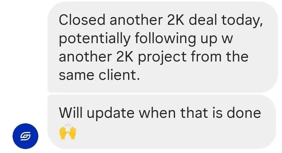 My students range from software developers to OBMs to funnel builders to branding consultants. Some charge $1.5K, others $5K+ — and they’ve all used this same system to generate leads in days, not months.