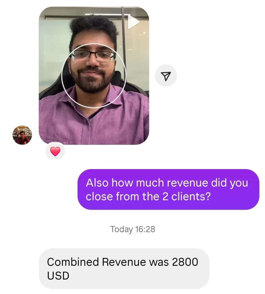 But I kept following up with my leads, stayed consistent, and within 4 weeks - I closed 2 clients worth $2,250 in revenue.